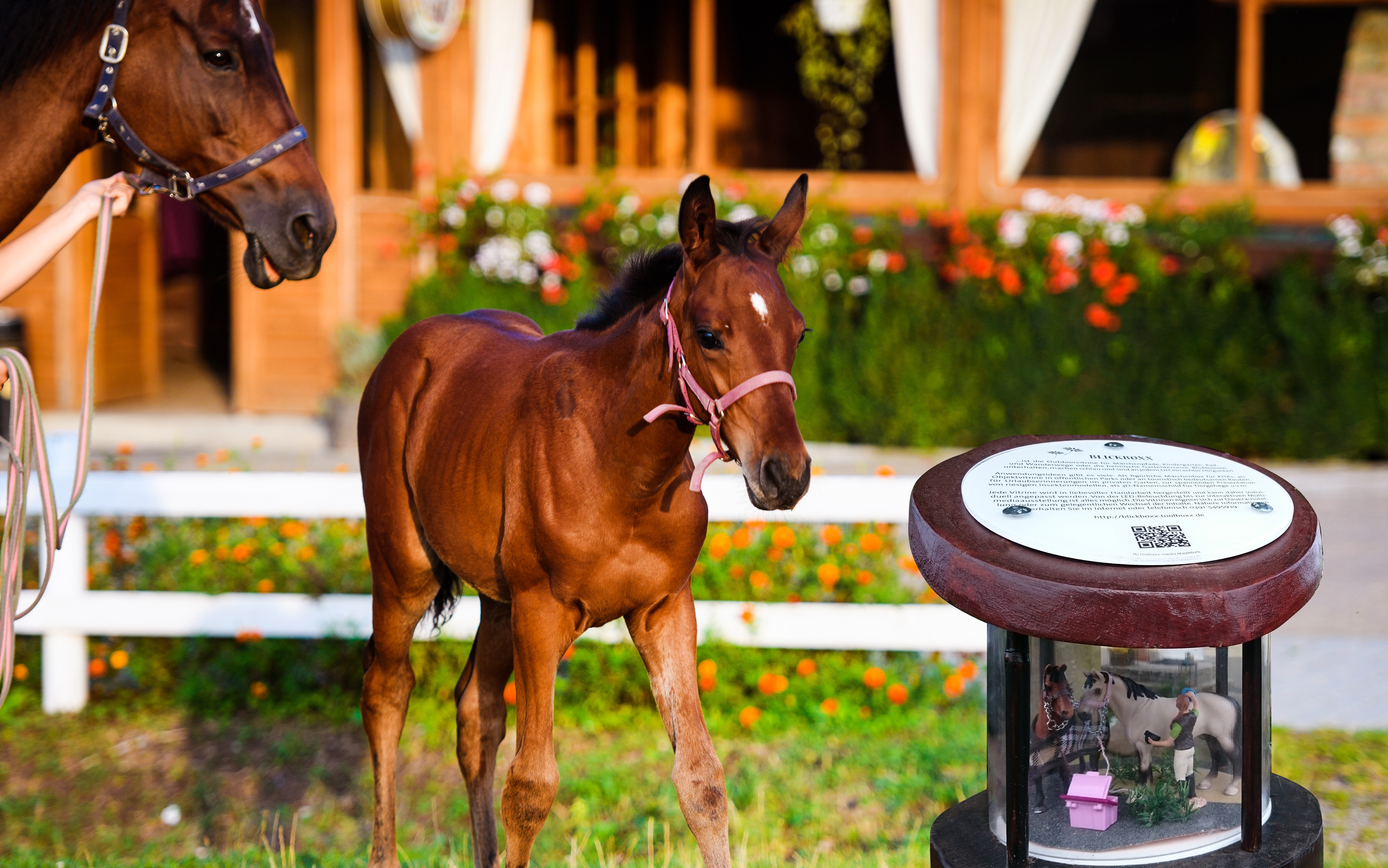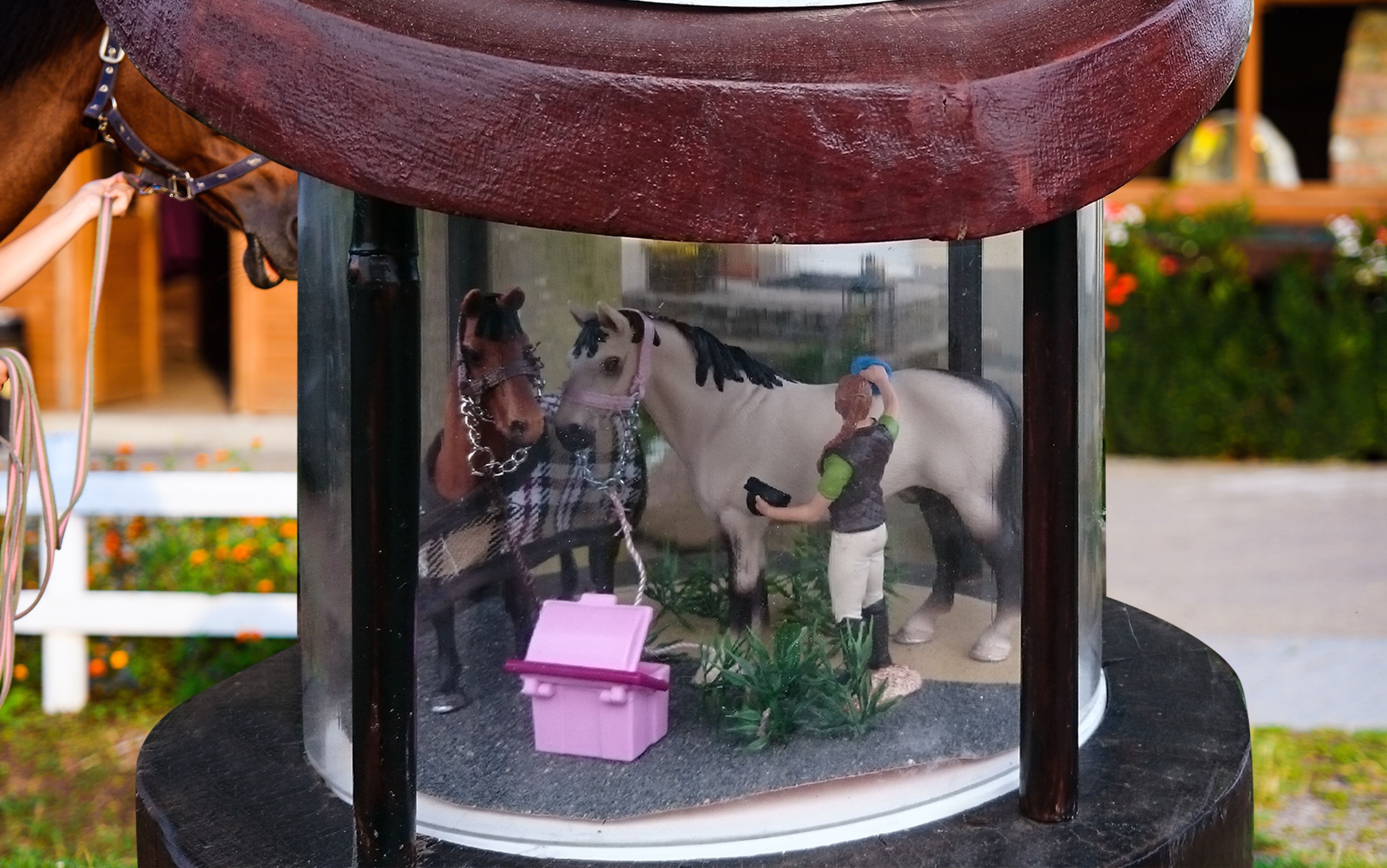 Wir lieben Pferde! Zeigen Sie ihre besondere Beziehung zu den Tieren auf Ihrer Reitanlage doch auch mit einer niedlichen Reiterszene in unserer Outdoorvitrine.